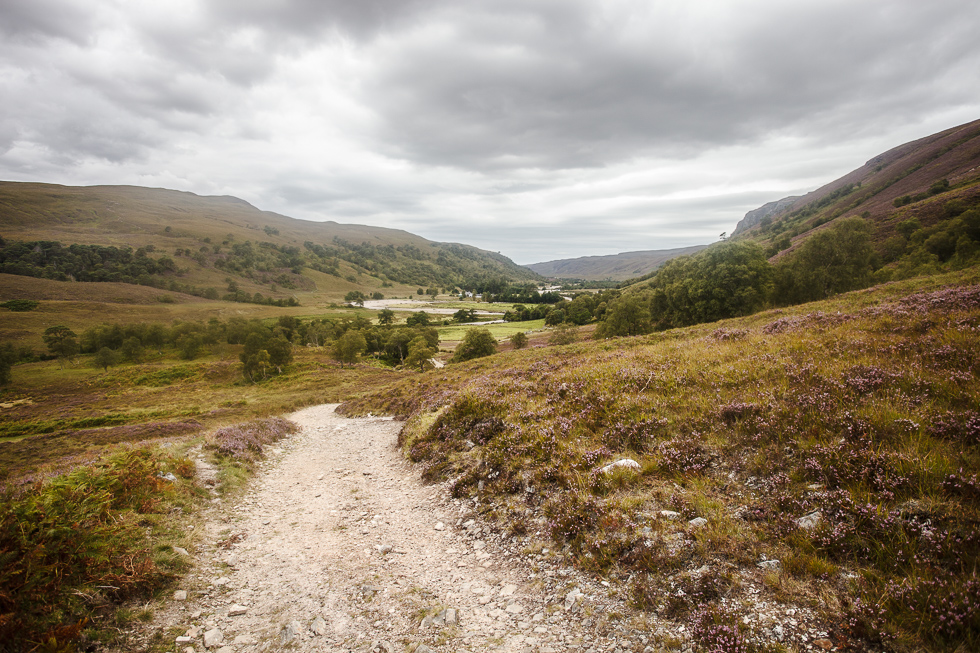 Oh the second day! Classic Highlands terrain and beautiful landscapes made it an awesome bikepacking day. I think I pretty much spent the whole day with a smile on my face. The section between Ballater and Tomintoul was all I was hoping for… and more. Leaving Ballater, I followed the River Muick 15 km heading south to end up at Spittal of Glen Muick. This was the only section where I passed many hikers along the trail. I maintained a casual pace and stopped along the way to take pictures. Believe it or not, I had been in Scotland for 5 days and I had yet to see rain – something unheard of.