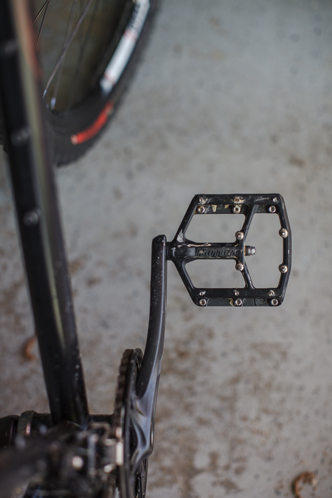 This set of pedals fits my style of riding just right. To me, part of the fun of traveling by bike is the opportunity to stop along the away and take pictures documenting the environment I’m in. Flat pedals allow me to instantaneously remove both feet from the pedals to reach for my camera. Also, I can wear my hiking shoes on the bike, this allows me to explore places on foot without having to deal with awkward SPD shoes. Mud can make your pedals feel squishy but these pedals shed mud extremely well. I never feel like I have to clean my muddy shoes before getting back on the bike. I have actually used the pedals to clean mud off my shoes before walking into a store.